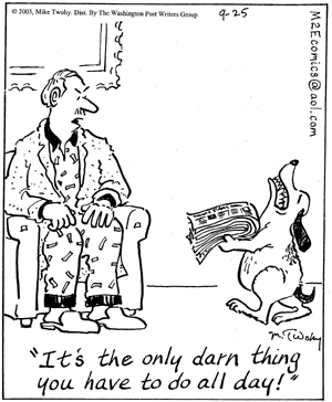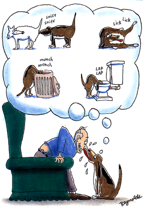 Anleitung, um einem Hund eine Pille zu verabreichen !! · Nehmen Sie den Hund in die Beuge Ihres linken Armes, so als ob Sie ein Baby halten. Legen Sie den rechten Daumen und Mittelfinger an beiden Seiten des Mäulchens an und üben Sie sanften Druck aus, bis der Hund es öffnet. Schieben Sie die Pille hinein und lassen Sie den Hund das Mäulchen schließen. · Sammeln Sie die Pille vom Boden auf und holen den Hund hinterm Bett vor. Nehmen Sie ihn wieder auf den Arm und wiederholen Sie den Vorgang. · Holen Sie den Hund aus dem Schlafzimmer und schmeißen Sie die angesabberte Pille weg · Angeln Sie die Pille aus dem Goldfischglas und den Hund hinter dem Bett hervor. Rufen Sie Ihren Mann aus dem Garten. · Knien Sie auf den Boden und klemmen den Hund zwischen die Knie. Halten Sie die Vorderpfoten fest. Ignorieren Sie das Knurren. Bitten Sie Ihren Mann den Kopf festzuhalten. und ihm ein Holzlineal in den Hals zu schieben. Lassen Sie die Pille auf dem Lineal hinunterkullern und reiben Sie den Hals des Hundes. · Holen Sie den Hund hinter dem Vorhang hervor. Nehmen Sie eine neue Pille aus der Packung. Notieren Sie sich, ein neues Lineal zu kaufen und den Vorhang zu flicken. · Wickeln Sie den Hund in ein großes Badetuch. Drapieren Sie die Pille in das Endstück eines Strohhalmes. Bitte Sie Ihren Mann, den Hund in den Schwitzkasten zu nehmen, so dass lediglich der Kopf durch die Ellenbogenbeuge schaut. Hebeln Sie das Mäulchen mit Hilfe eines Kugelschreibers auf und pusten Sie die Pille in den Hals. · Überprüfen Sie die Packungsbeilage, um sicher zu gehen, dass die Pille für Menschen harmlos ist. Trinken Sie ein Glas Wasser, um den Geschmack loszuwerden. Verbinden Sie den Arm Ihres Mannes und entfernen Sie das Blut aus dem Teppich mit kaltem Wasser und Seife. · Holen Sie den Hund aus dem Gartenhäuschen des Nachbarn. Nehmen Sie eine neue Pille. Stecken Sie den Hund in einen Schrank und schließen Sie die Tür in Höhe des Nackens, so dass der Kopf herausschaut. Hebeln Sie das Mäulchen mit einem Dessertmesser auf. flitschen Sie die Pille mit einem Gummiband in den Rachen. · Holen Sie einen Schraubenzieher aus der Garage und hängen Sie die Tür zurück in die Angel. Legen Sie kalte Kompressen auf Ihr Gesicht und überprüfen Sie das Datum der letzten Tetanusimpfung. Werfen Sie Ihr blutverschmiertes T-Shirt weg und holen Sie ein Neues aus dem Schlafzimmer. · Lassen Sie die Feuerwehr den Hund aus dem Swimmingpool des Nachbarn holen. Entschuldigen Sie sich beim Nachbarn, der in den Zaun gefahren ist, um den Hund auszuweichen. Nehmen Sie die letzte Pille aus der Packung. · Binden Sie die Vorder- und Hinterläufe mit einer Wäscheleine zusammen. Knüpfen Sie sie an die Beine des Esstisches. Ziehen Sie die Gartenhandschuhe über und öffnen Sie das Mäulchen mit Hilfe eines Brecheisens. Stopfen Sie die Pille hinein, gefolgt von einem großen Stück Fleisch. Halten Sie den Kopf des Hundes senkrecht und schütten das Wasser hinterher, um die Pille hinunter zu spülen. · Lassen Sie sich von Ihrem Mann ins Krankenhaus fahren. Sitzen Sie still, während dar Arzt den Finger wieder an die Hand annäht und die Pille aus dem rechten Auge entfernt. Halten Sie auf dem Rückweg am Möbelhaus und bestellen einen neuen Tisch. · Versuchen Sie das Ganze noch einmal mit Tropfen statt Pillen oder kaufen sich gleich eine Katze. Mit der wird es zwar nicht einfacher aber sie wird nicht knurren !