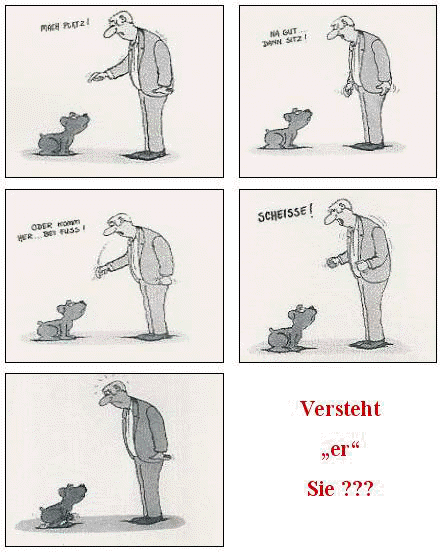 Wenn ein Hund nur darf, wenn er soll, aber nie kann, wenn er will, dann mag er auch nicht, wenn er muss. Wenn er aber darf, wenn er will, dann mag er auch, wenn er soll, und dann kann er auch, wenn er muss ... Denn schließlich: Hunde, die können sollen, müssen wollen dürfen ...